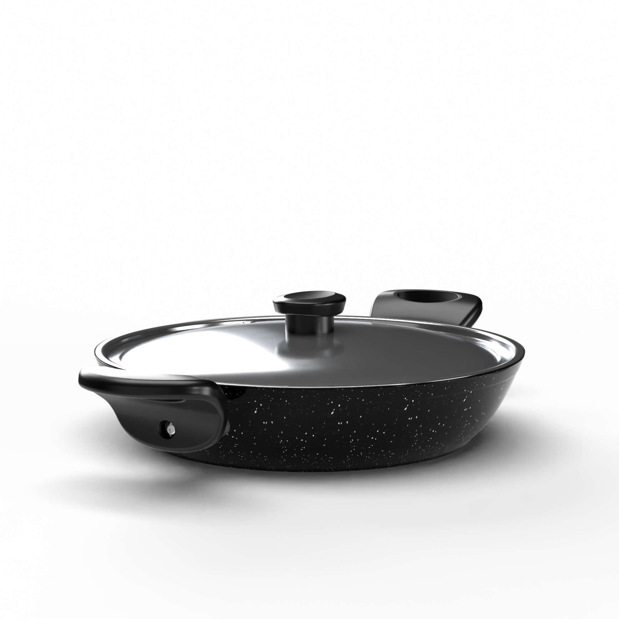 - يتمتع الصحن بطلاء جرانيت كوري متطور، مما يضمن عدم التصاق البيض على السطح. يسهل هذا الطلاء عملية الطهي والتنظيف، مما يسمح لكي بتحضير الطعام بشكل صحي دون الحاجة لاستخدام كميات كبيرة من الدهون.