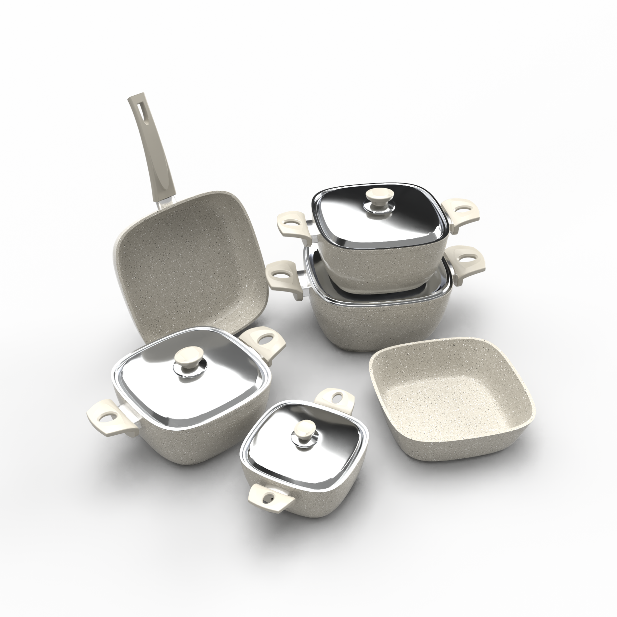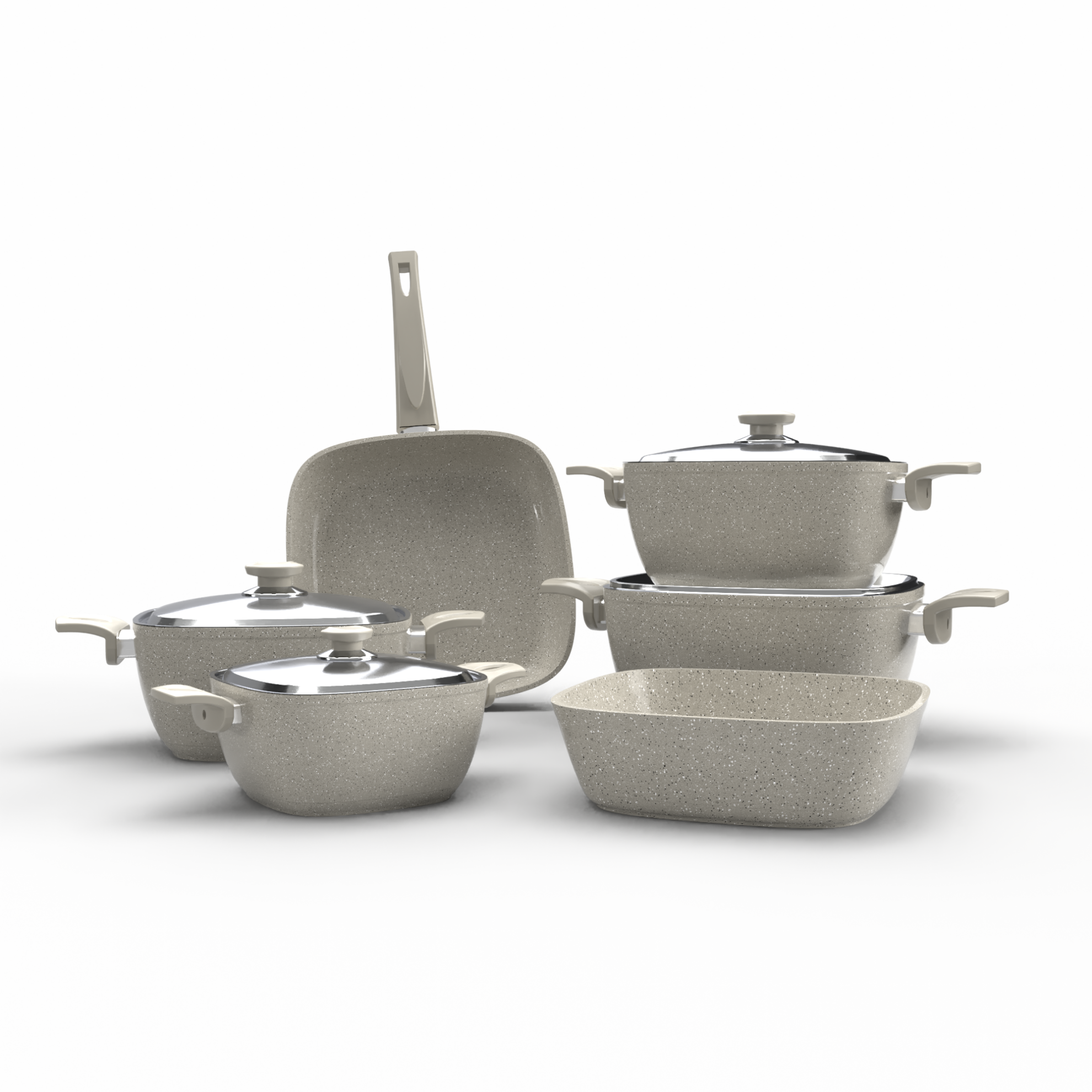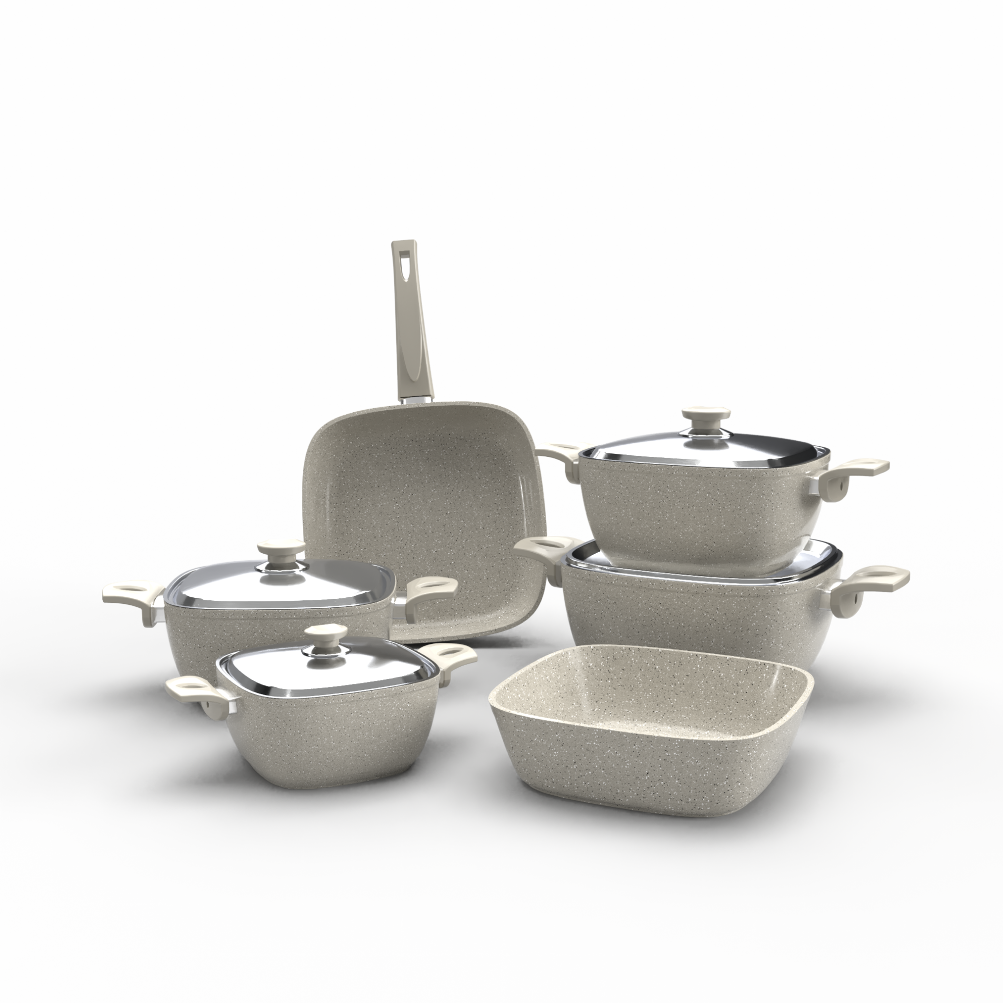 - ألومنيوم بسمك ٤.٢ مم: المواد المستخدمة في تصنيع الأطقم هي ألومنيوم عالي الجودة بسمك ٤.٢ مم، مما يضمن توزيعًا مثاليًا للحرارة ويقلل من الوقت اللازم للطهي، مما يساهم في الحفاظ على مذاق الطعام بشكل مثالي.