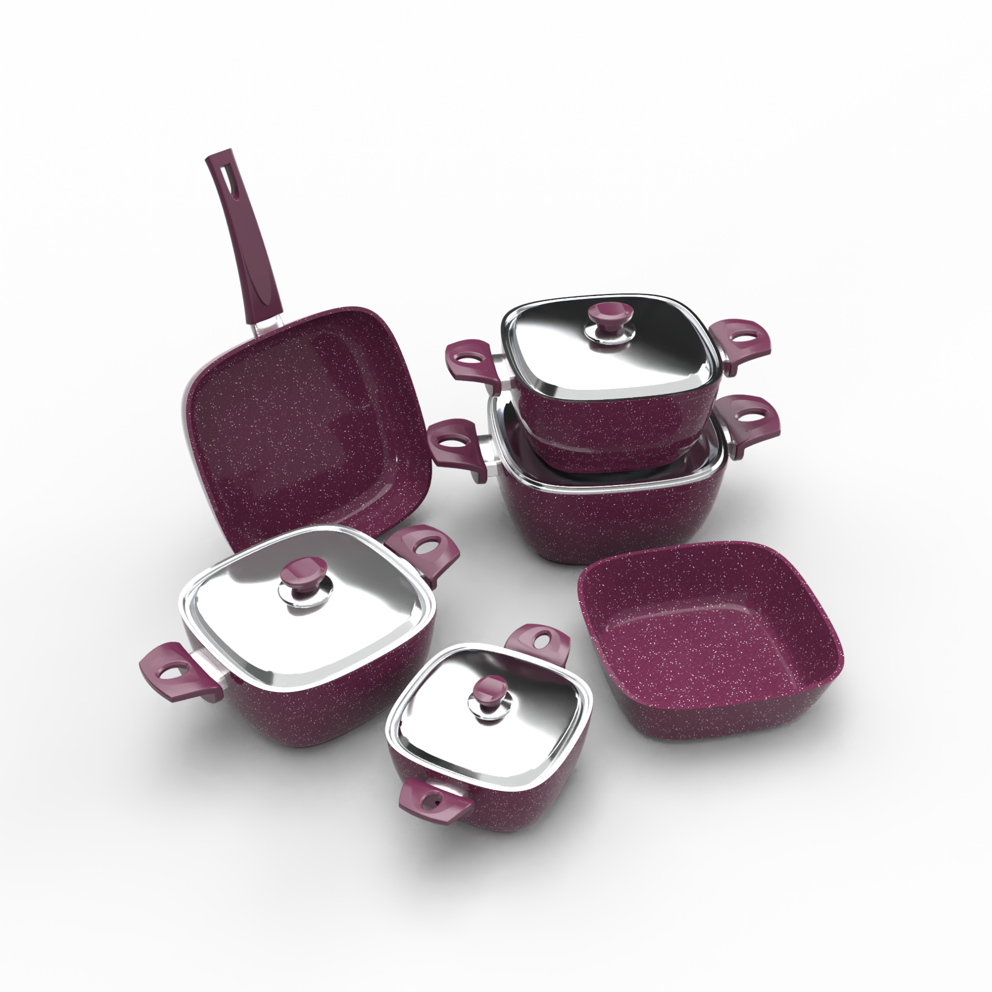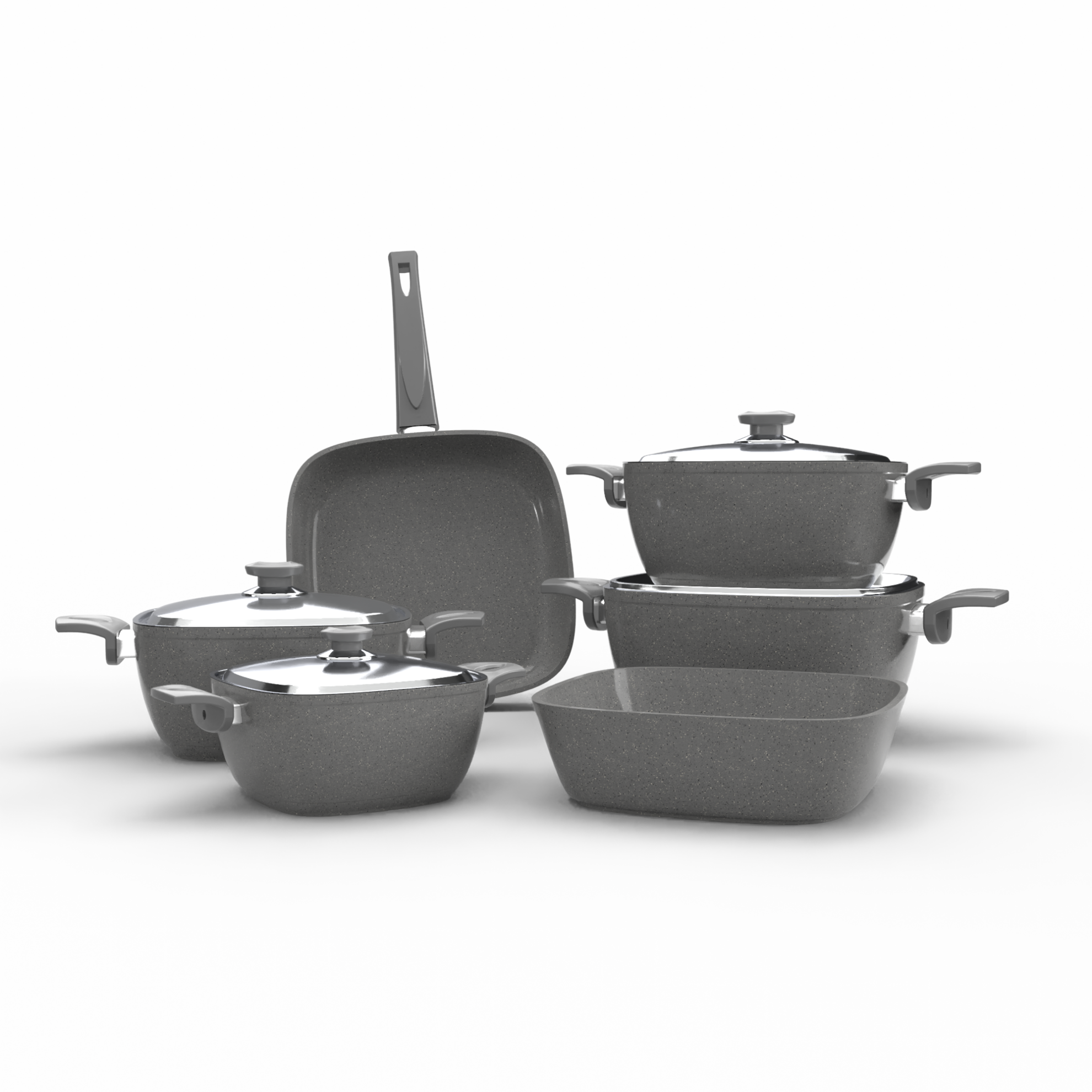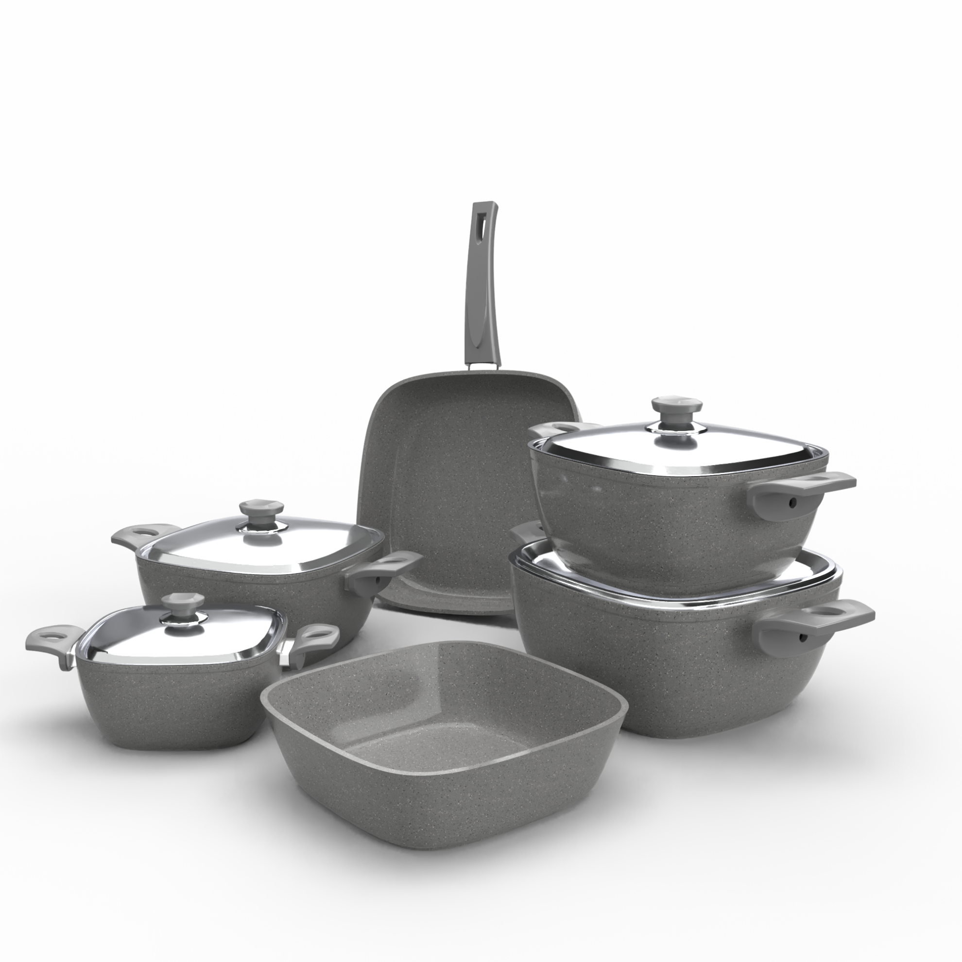 - ألومنيوم بسمك ٤.٢ مم: المواد المستخدمة في تصنيع الأطقم هي ألومنيوم عالي الجودة بسمك ٤.٢ مم، مما يضمن توزيعًا مثاليًا للحرارة ويقلل من الوقت اللازم للطهي، مما يساهم في الحفاظ على مذاق الطعام بشكل مثالي.