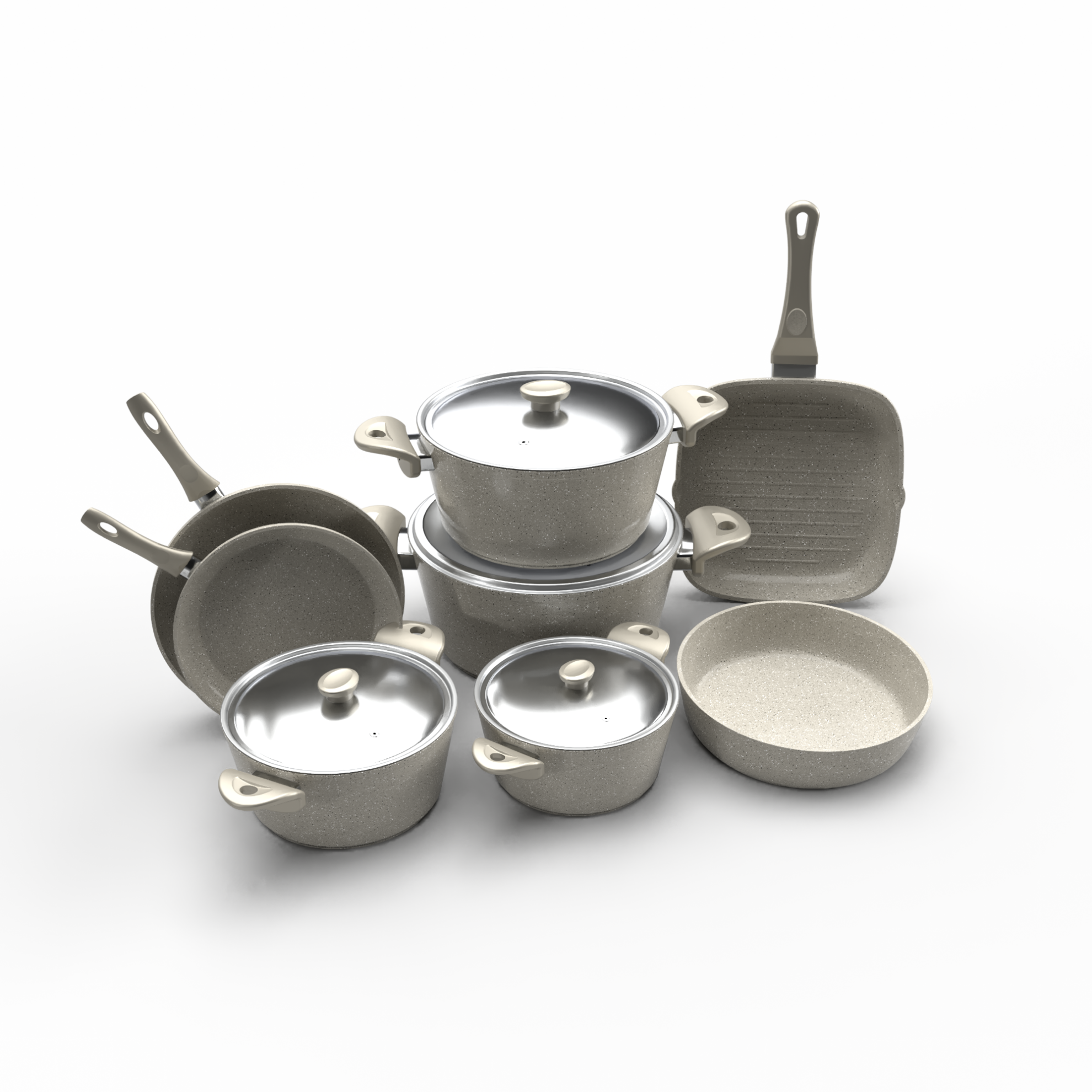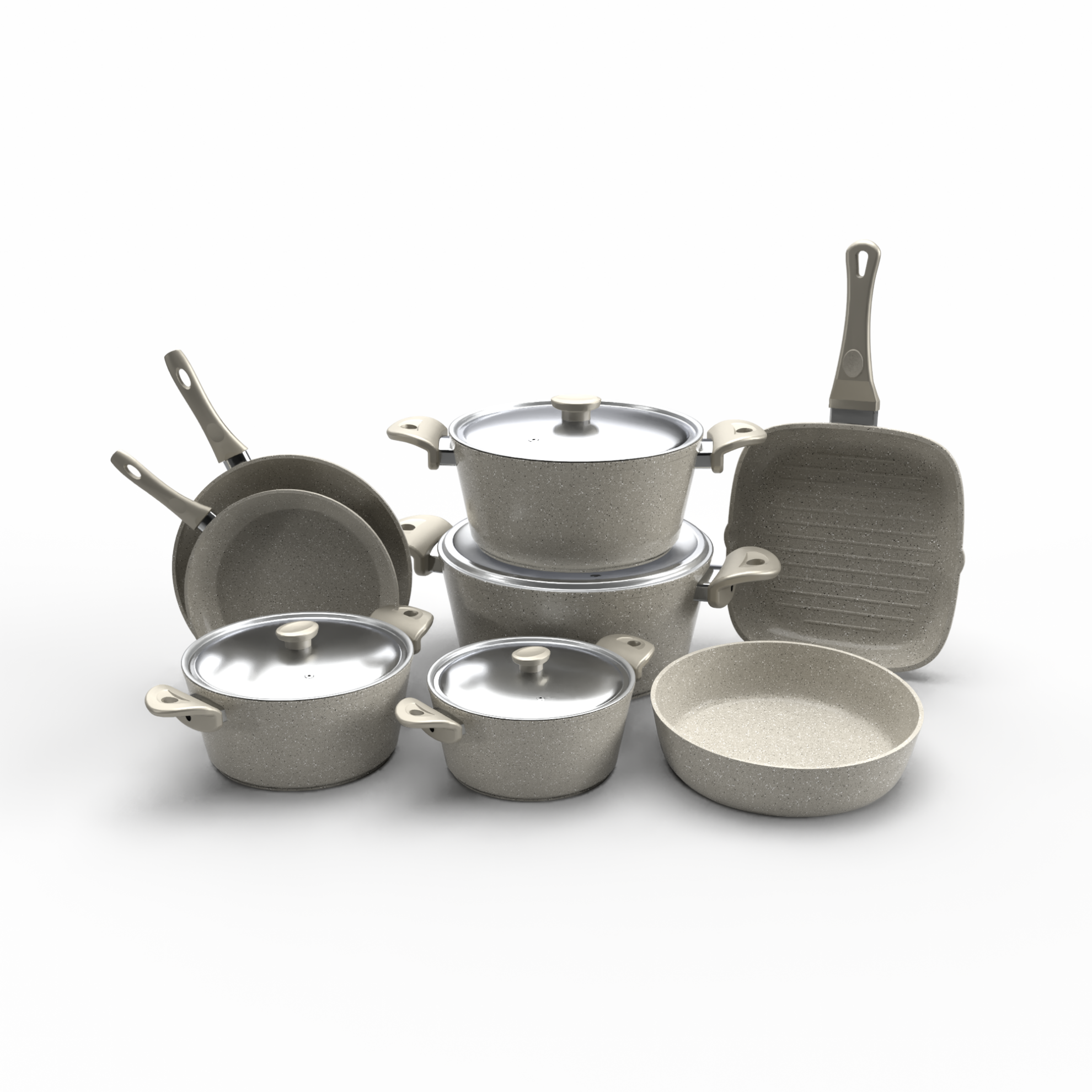- ألومنيوم بسمك ٤.٢ مم: المواد المستخدمة في تصنيع الأطقم هي ألومنيوم عالي الجودة بسمك ٤.٢ مم، مما يضمن توزيعًا مثاليًا للحرارة ويقلل من الوقت اللازم للطهي، مما يساهم في الحفاظ على مذاق الطعام بشكل مثالي.