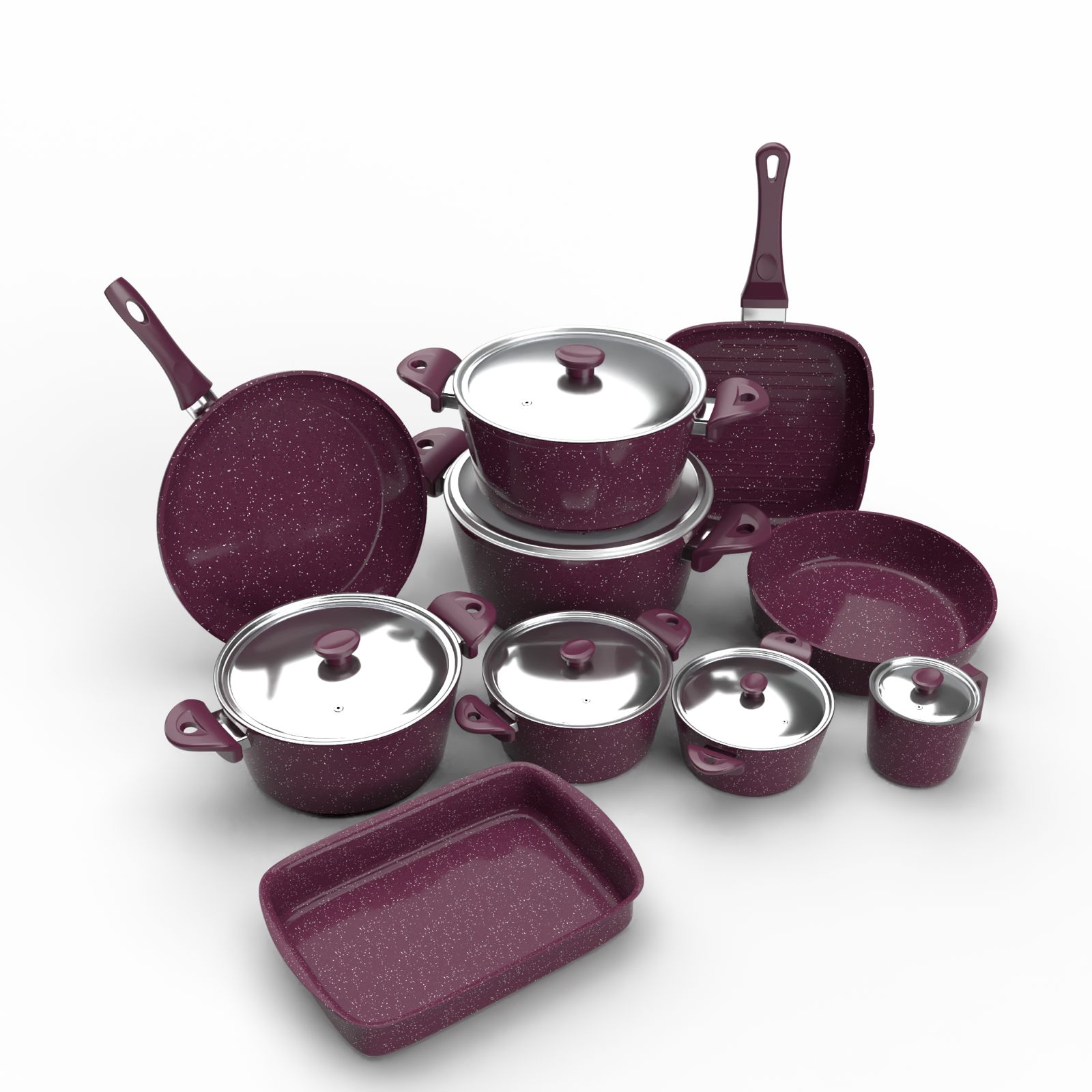 - ألومنيوم بسمك ٤.٢ مم: المواد المستخدمة في تصنيع الأطقم هي ألومنيوم عالي الجودة بسمك ٤.٢ مم، مما يضمن توزيعًا مثاليًا للحرارة ويقلل من الوقت اللازم للطهي، مما يساهم في الحفاظ على مذاق الطعام بشكل مثالي.